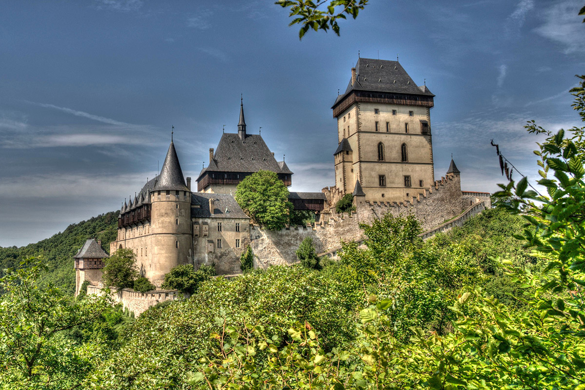 je středověký hrad, nacházející se v katastrálním území Budňany v městysi Karlštejn v okrese Beroun, asi 30 km jihozápadně od Prahy, uprostřed Chráněné krajinné oblasti Český kras.Byl založen císařem Karlem IV. v roce 1348.